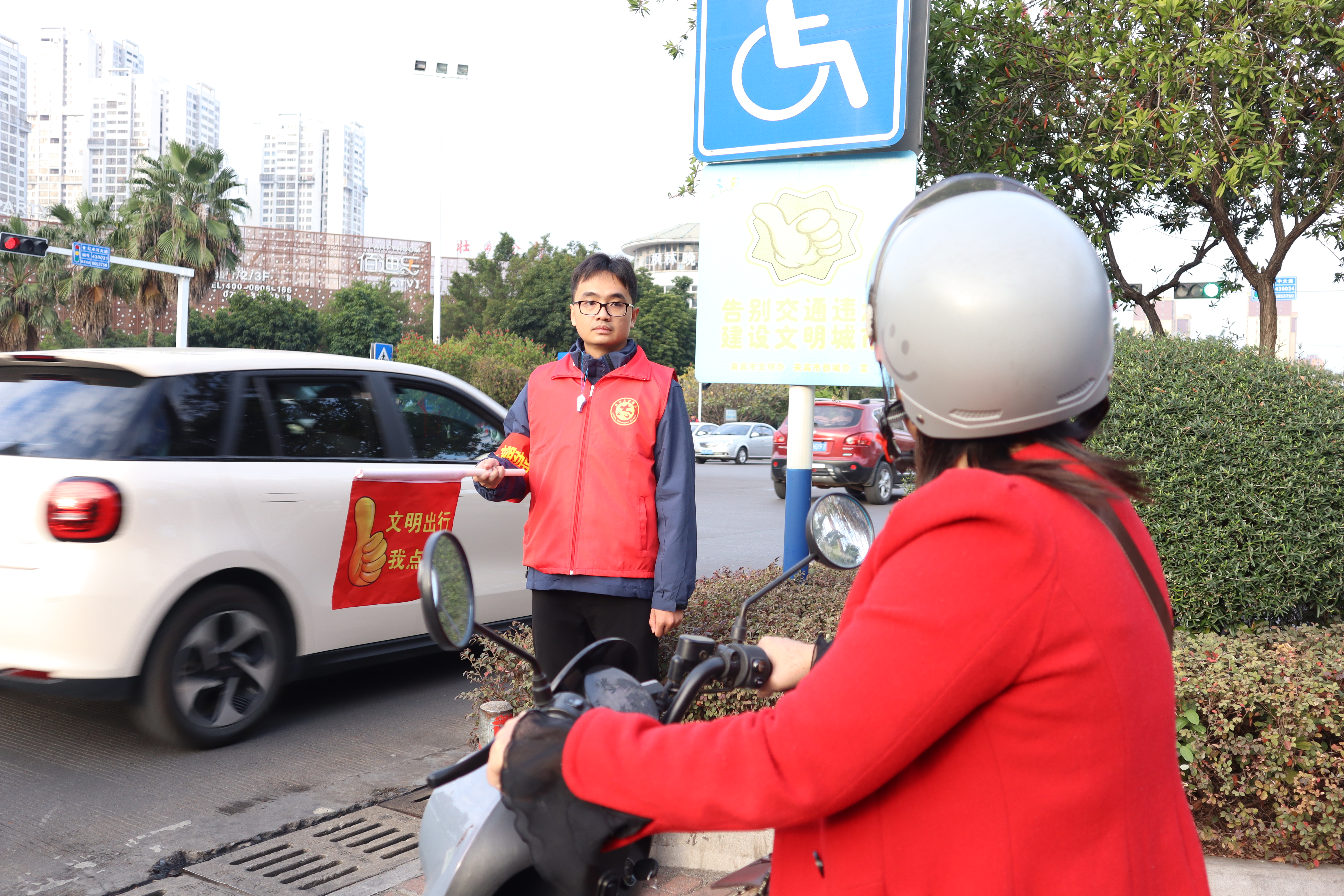 志愿者在進行交通文明勸導。 羅倩尹 攝